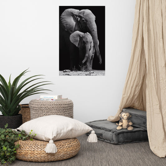 Affiche "Éléphant" Noir et Blanc - Finition Mat