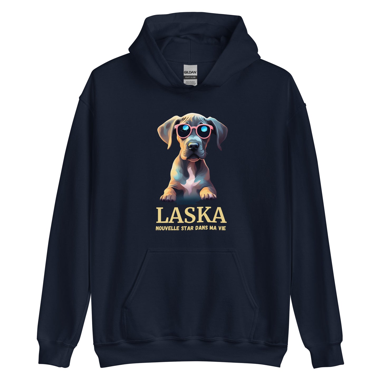 Affichez fièrement votre amour pour les Dogues allemands avec notre sweat à capuche personnalisable. Conçu pour les passionnés de cette race majestueuse, ce sweat allie confort, style et chaleur, tout en permettant une touche personnelle unique avec le nom de votre chien.